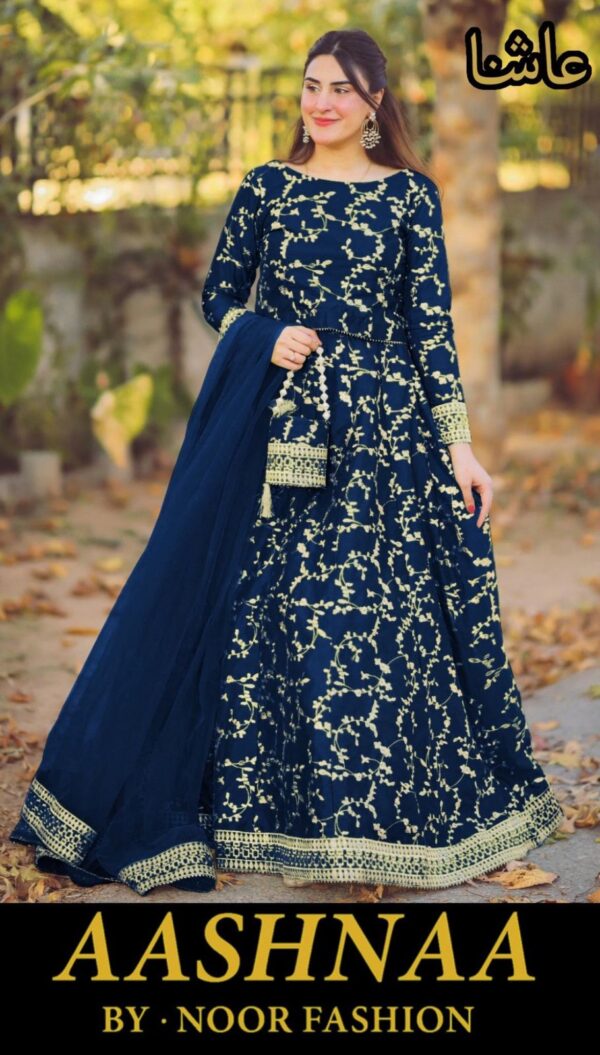 4 Piece Embroidered Top With Long Flare Embroidery Skirt And Four Side Border Embroidered Dupatta With Eidi Potli (Copy)