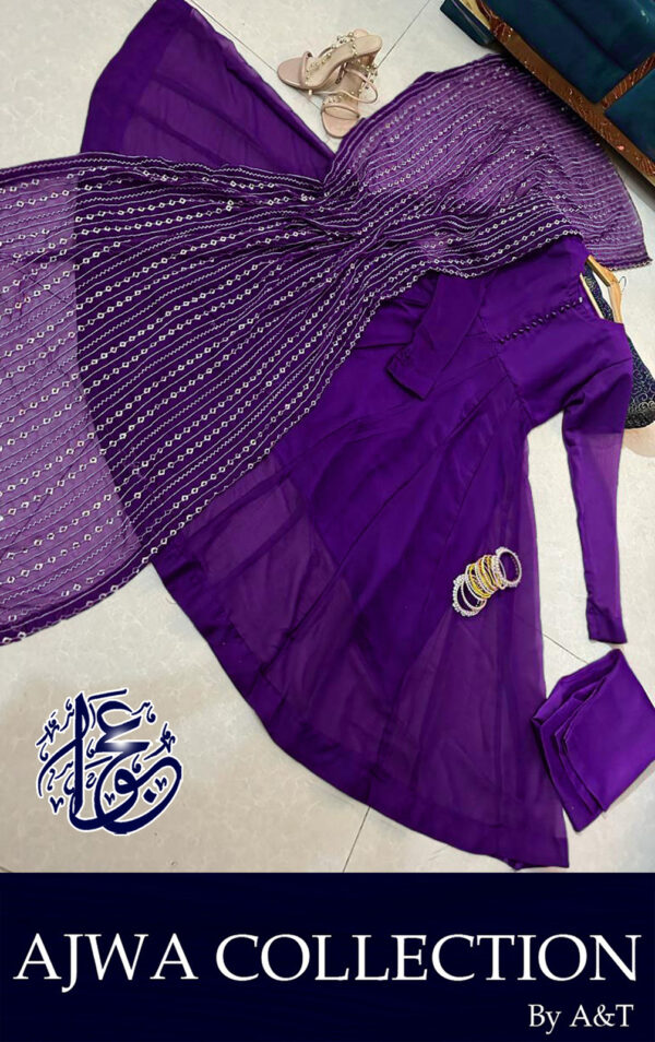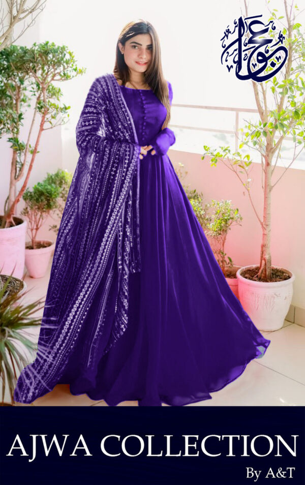 Allover Fully Embroidered Dupatta, With Handmade Button Kalli Work Long Flare Maxi 3Pcs (Copy) (Copy)