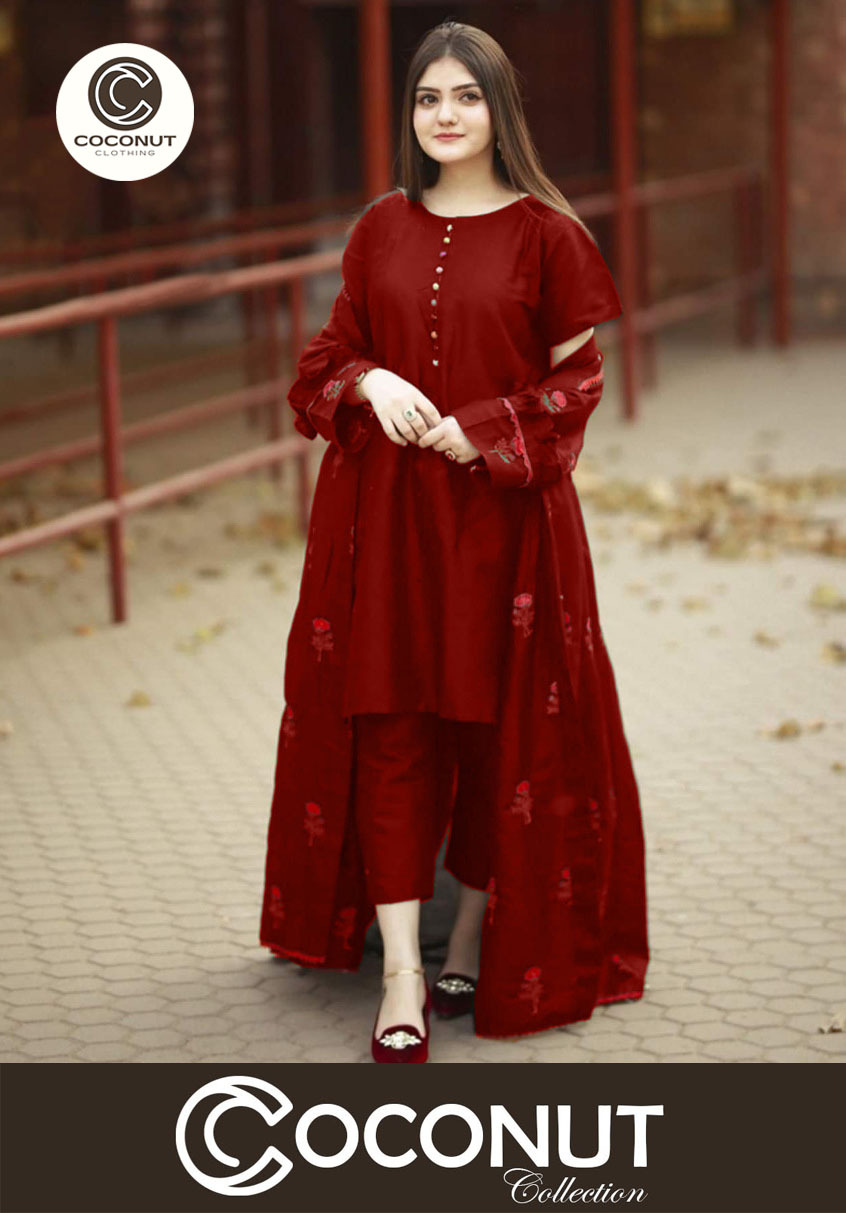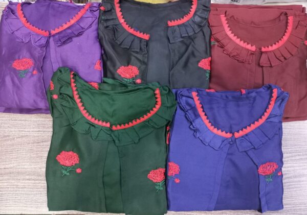 Front Rose Embroidery Gown with inner and Trouser 3PCs (Copy) (Copy)