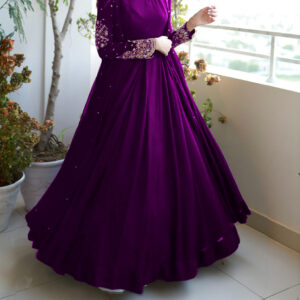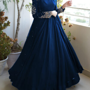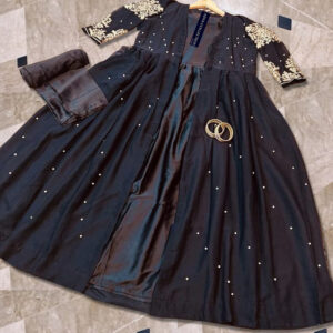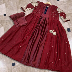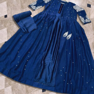 Heavy Embroidered With Front And Back Pearls Attached Gown With Long Maxi Trouser 3Piece
