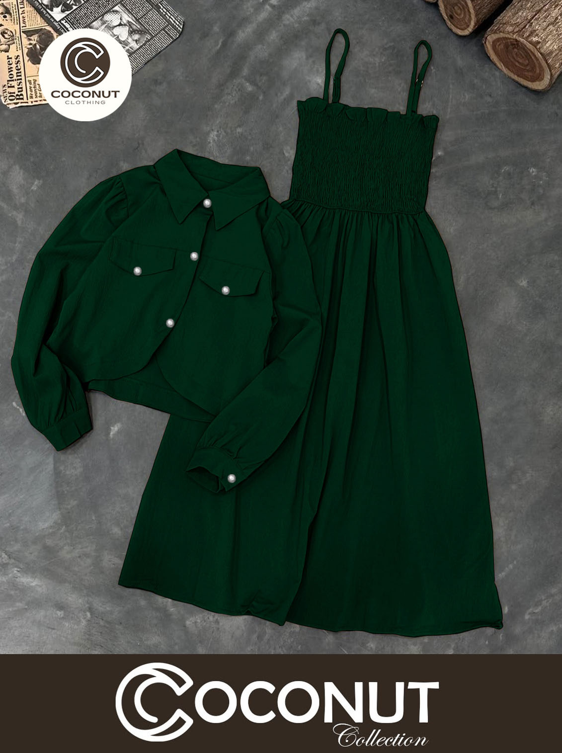 Kaaj Button Coaty with Gazzer Romper Frock 2PCs