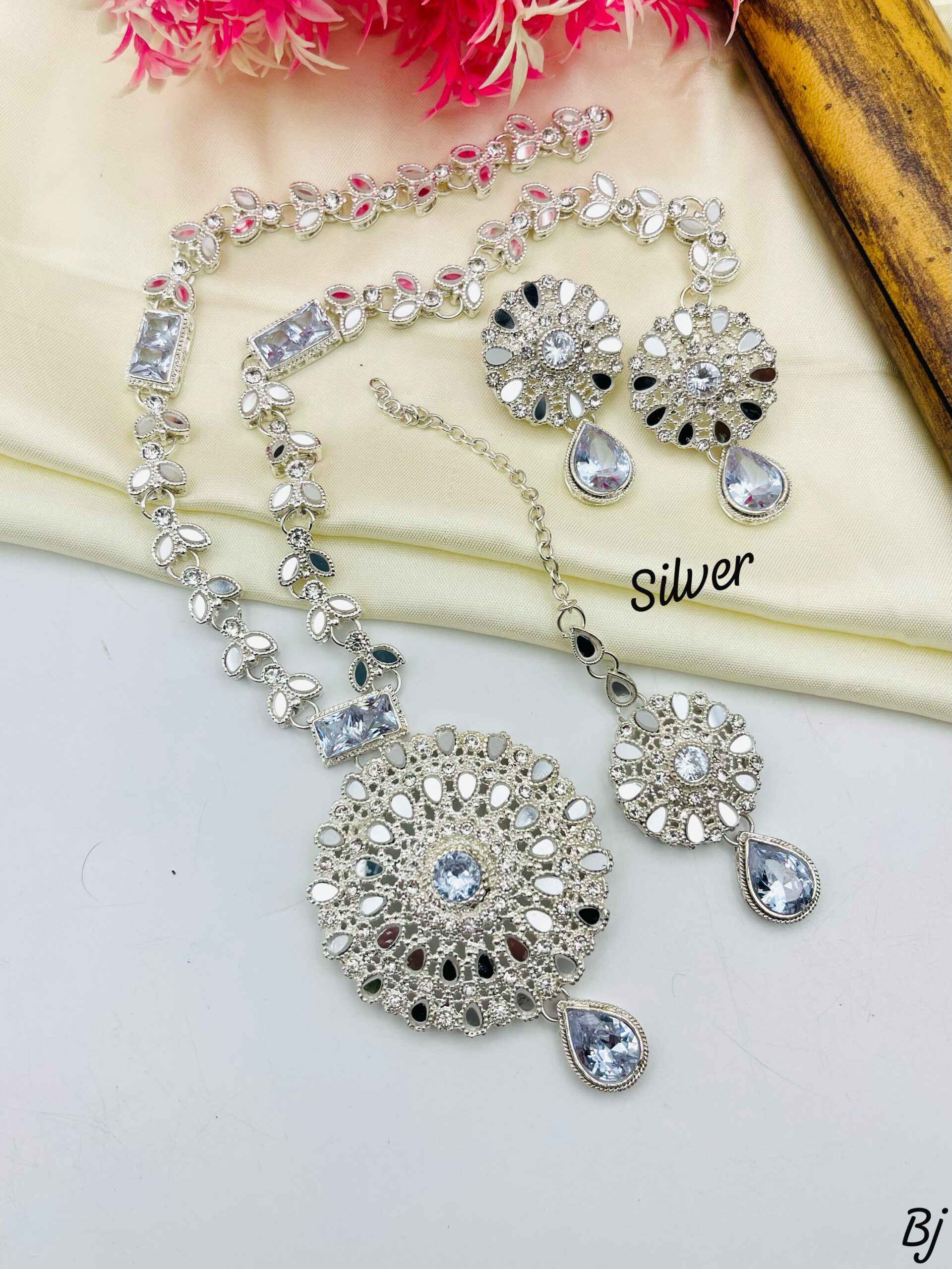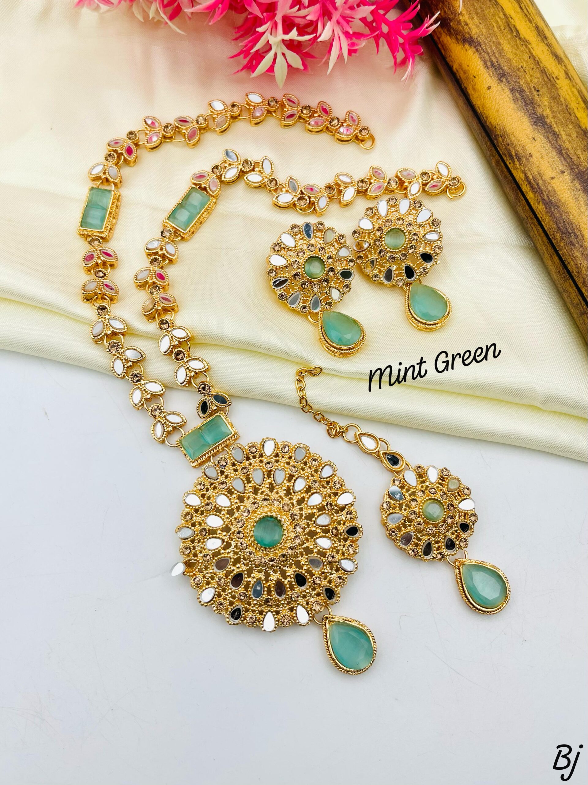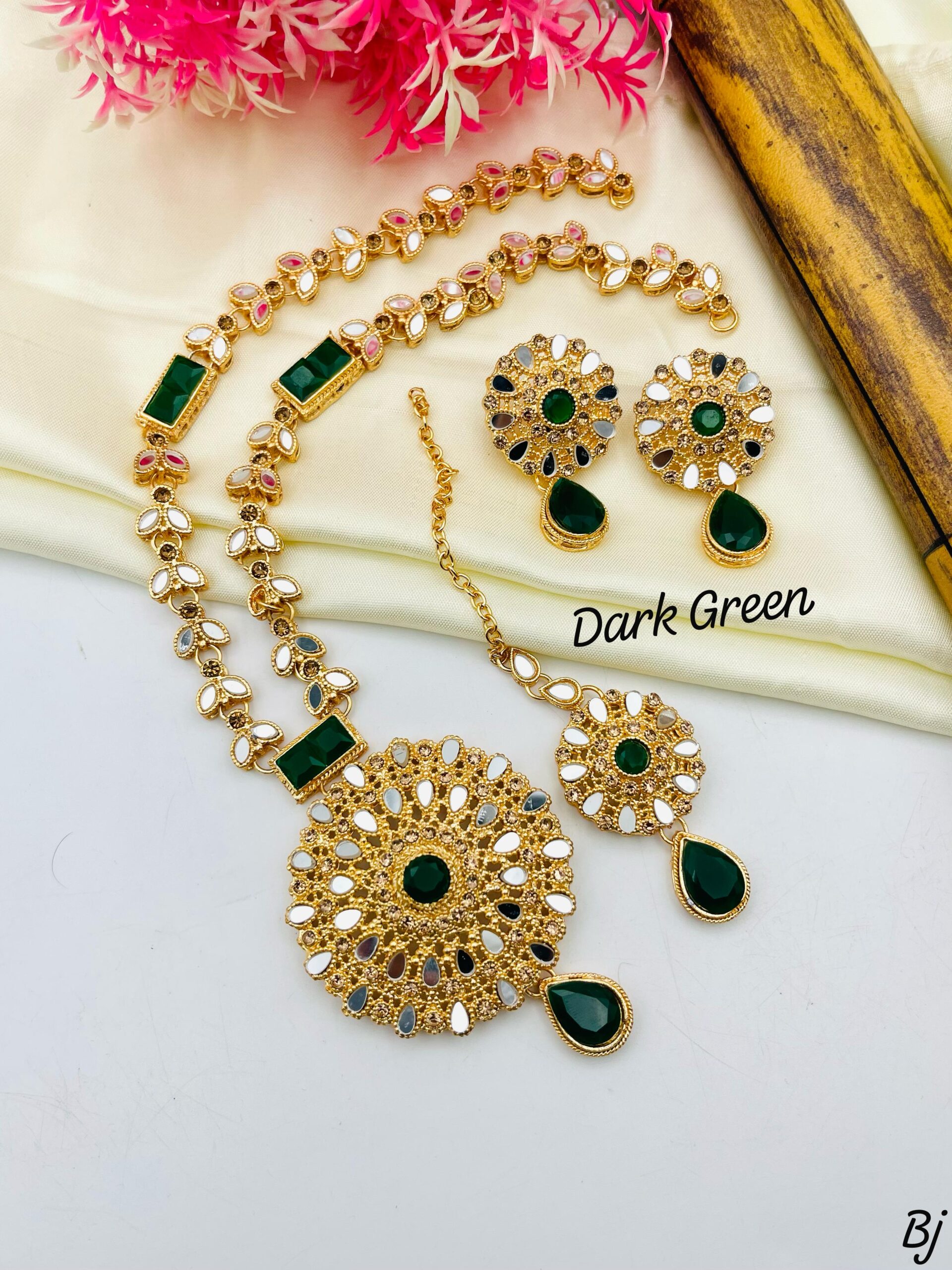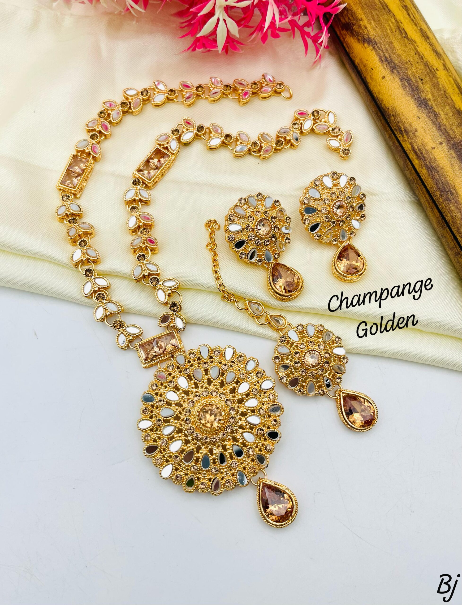 Fancy Beautiful Party Wear Mala Style Zircon Necklace Set With Earings And Tika For Her😍😍😍