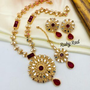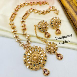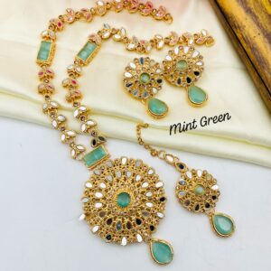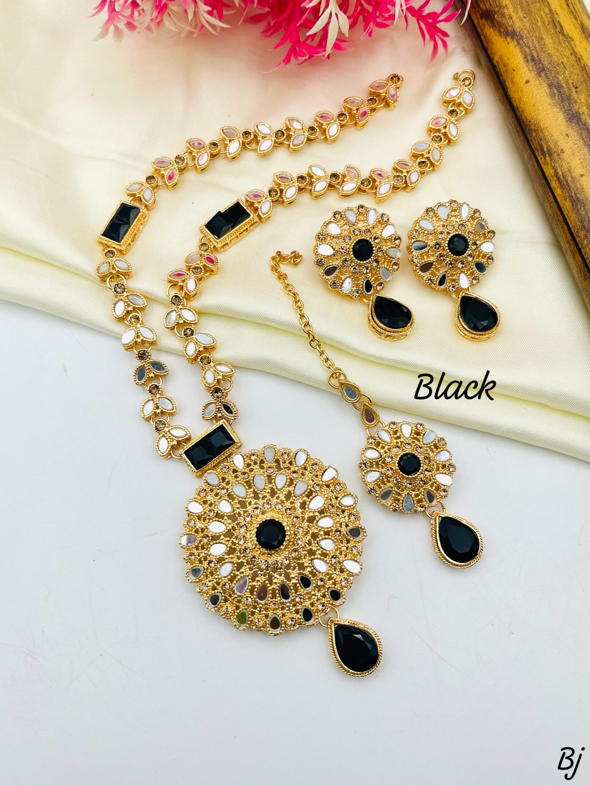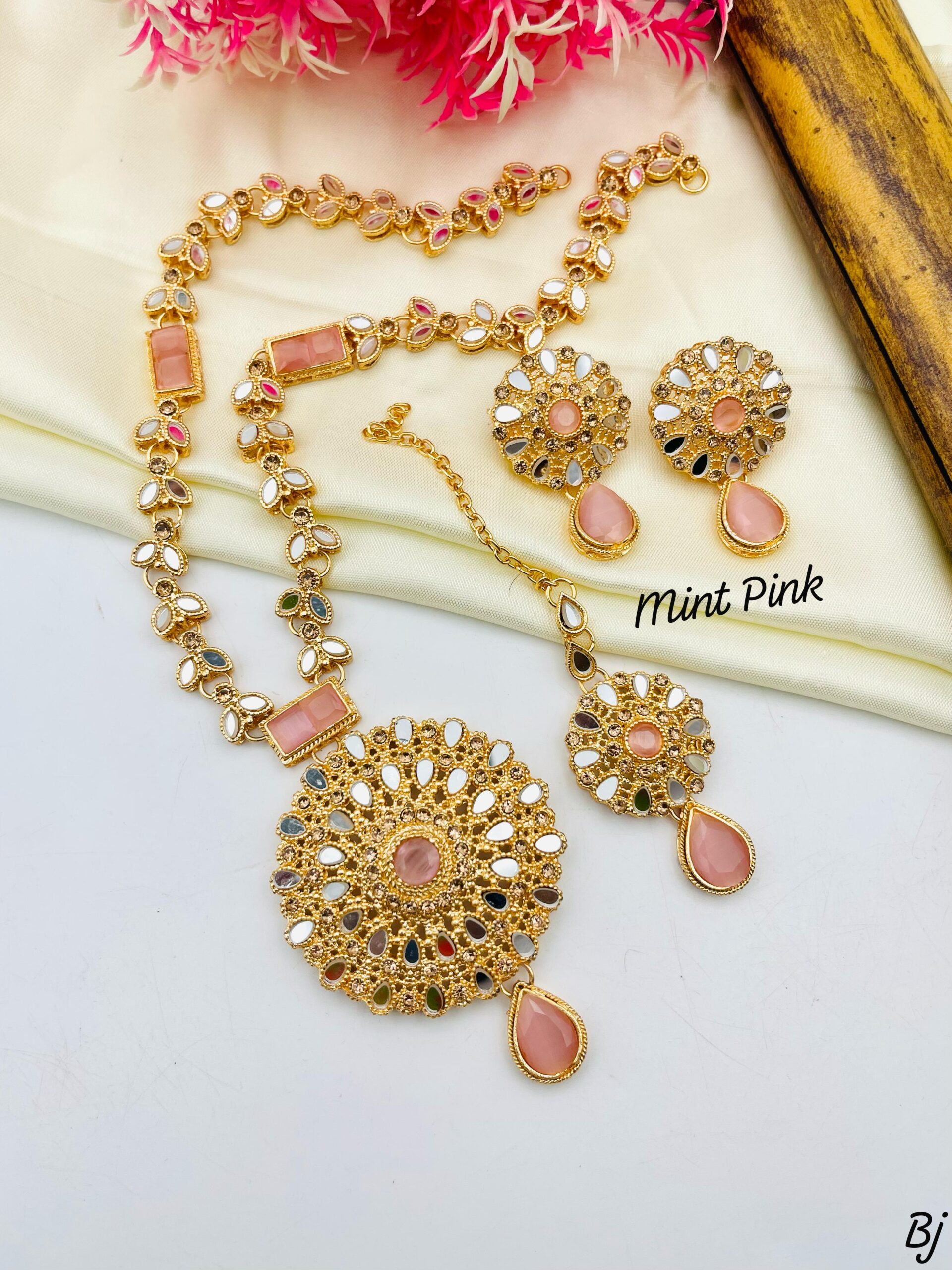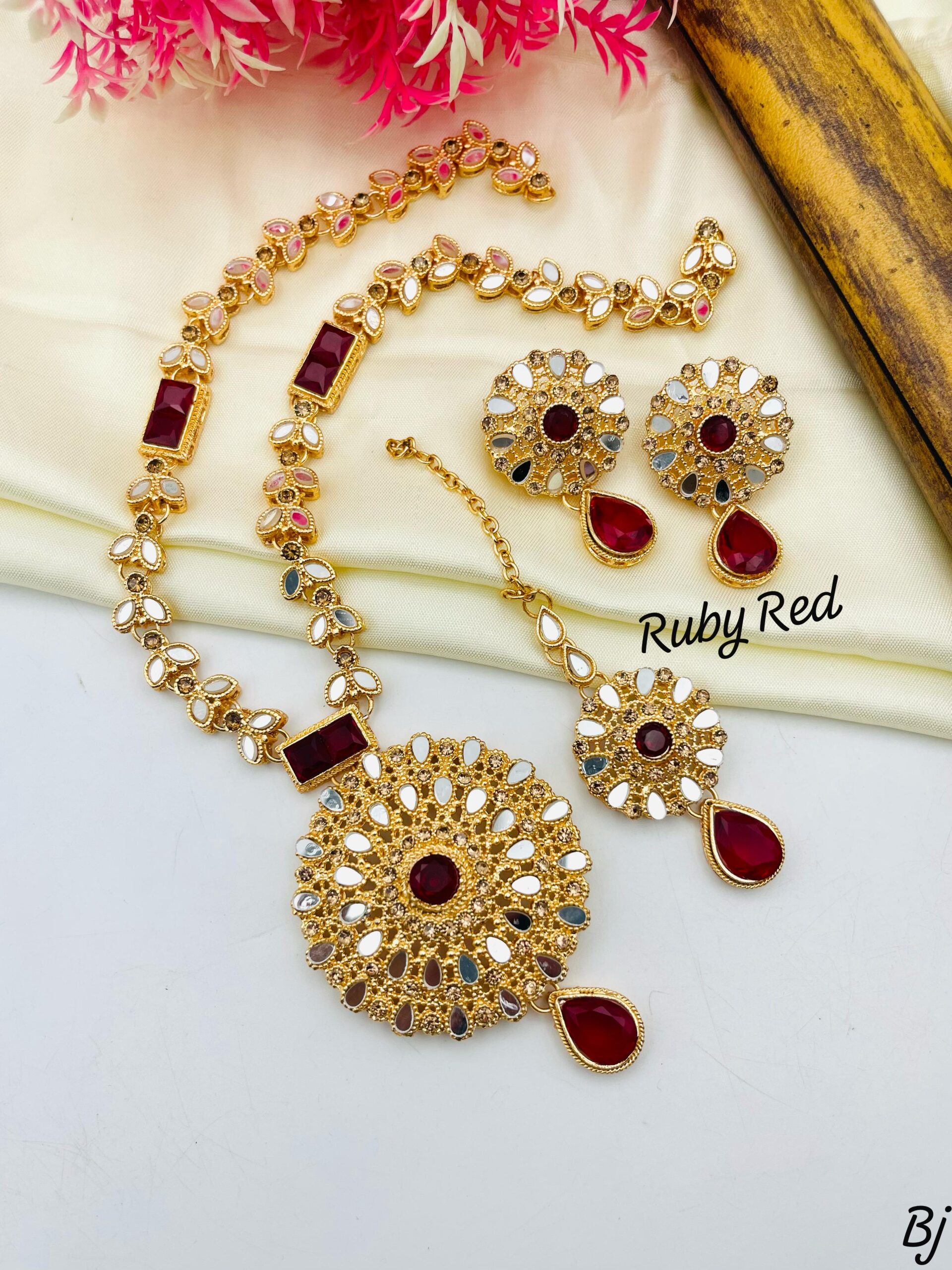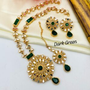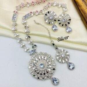 Fancy Beautiful Party Wear Mala Style Zircon Necklace Set With Earings And Tika For Her😍😍😍