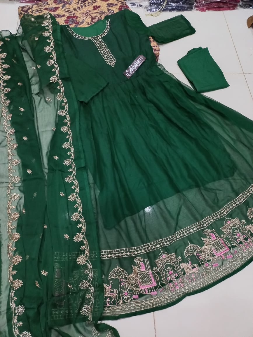 Neck, Sleeves & Daman Embroidered Maxi with Emb Dupatta 3Pcs (Copy)