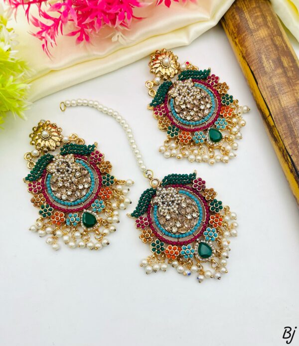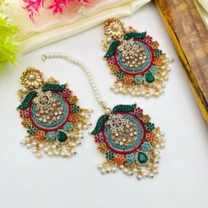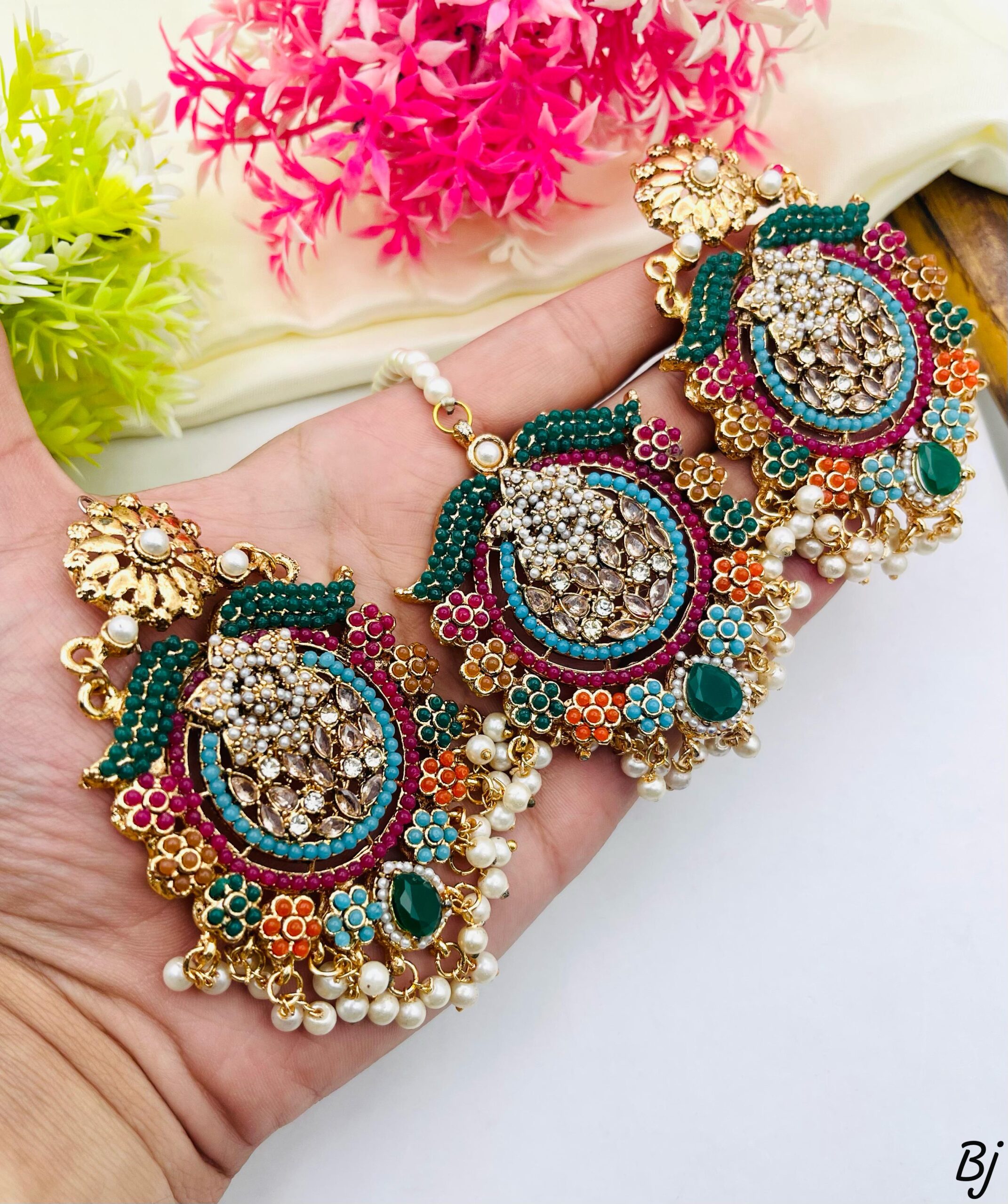 Fancy Beautiful Rajwari Style Zircon Work Nouratan Teeka Bounda For Her😍😍😍