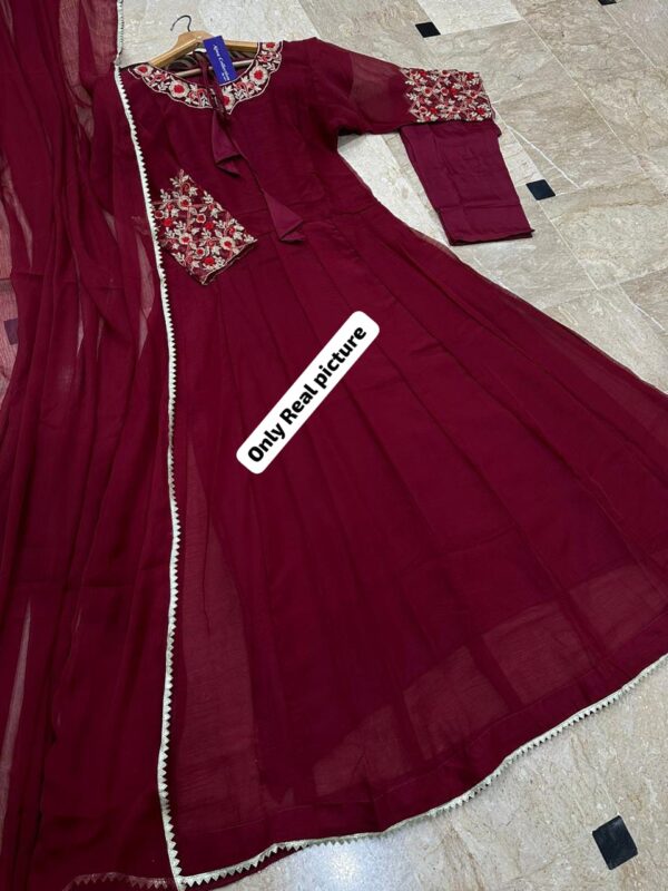 Sleeves,Neck Multi Embroidery Long Flare Maxi With Trouser Dupatta 3Pcs